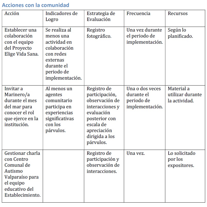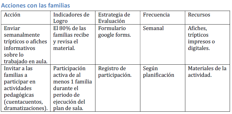 – Fortalecer el vínculo con las familias mediante un trabajo colaborativo, que incluya el envío de información semanal a través de afiches o trípticos, orientados a potenciar los aprendizajes y la continuidad educativa en el hogar.